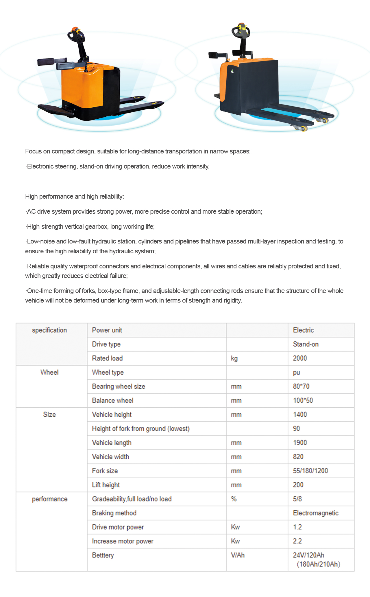 Factory price Direct 1.5t 2t Electric Pallet forklift Truck mini Electric Jack Pallet Truck